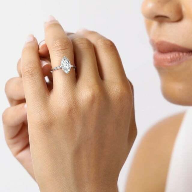 The Aubrey engagement ring in 18k white gold with a marquise diamond.
