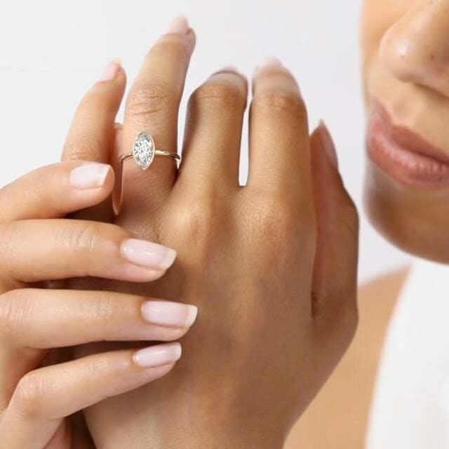 The Aubrey engagement ring in 18k yellow gold with a marquise diamond.