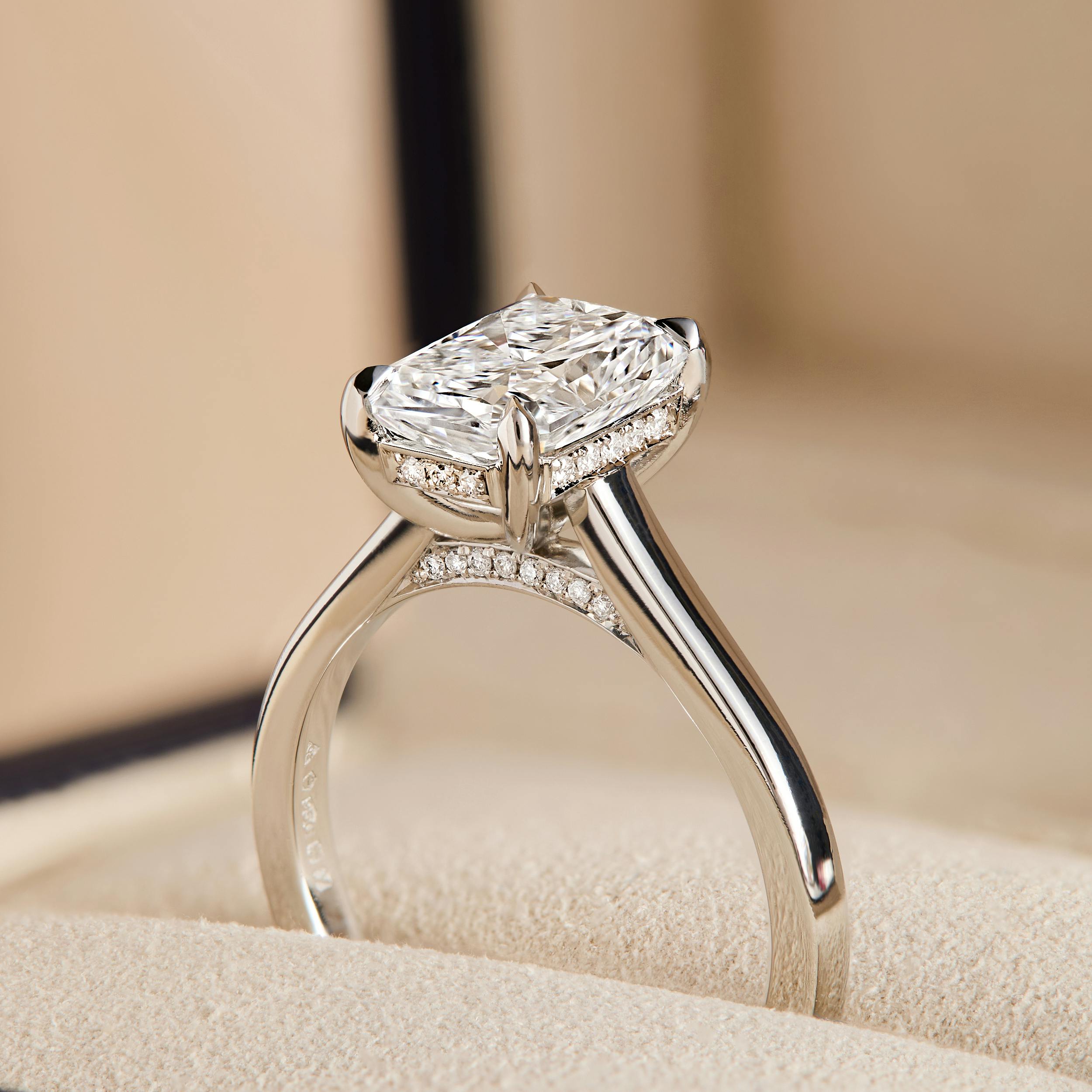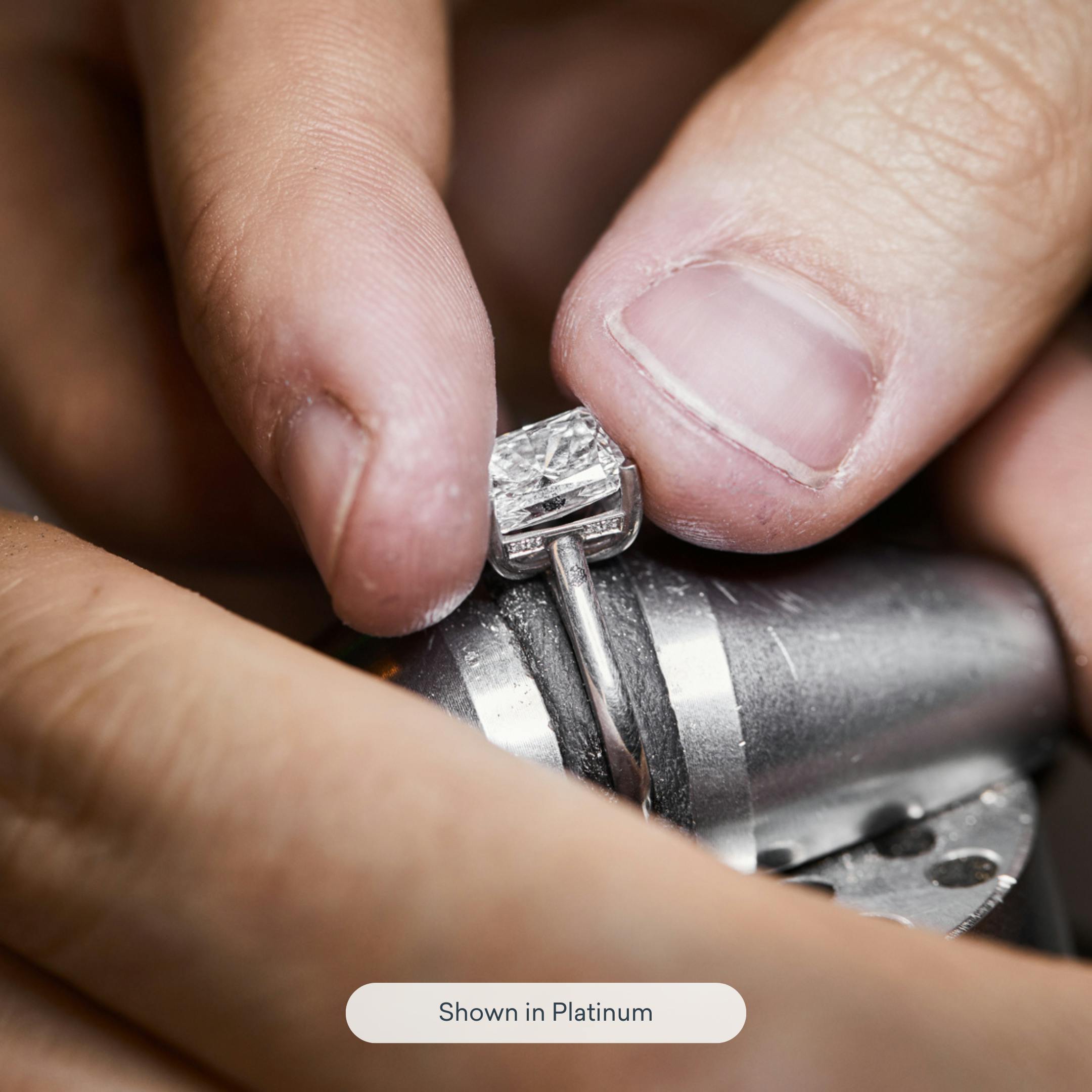 Available with a natural or lab grown diamond, the Bardot updates classic style with sleek lines and refined proportions, designed to maximise the dispersion of light throughout the centre diamond. The minimalist form of the Bardot gives this simple solitaire its enduring elegance. This wedfriendly design is crafted to sit comfortably alongside a wedding ring.