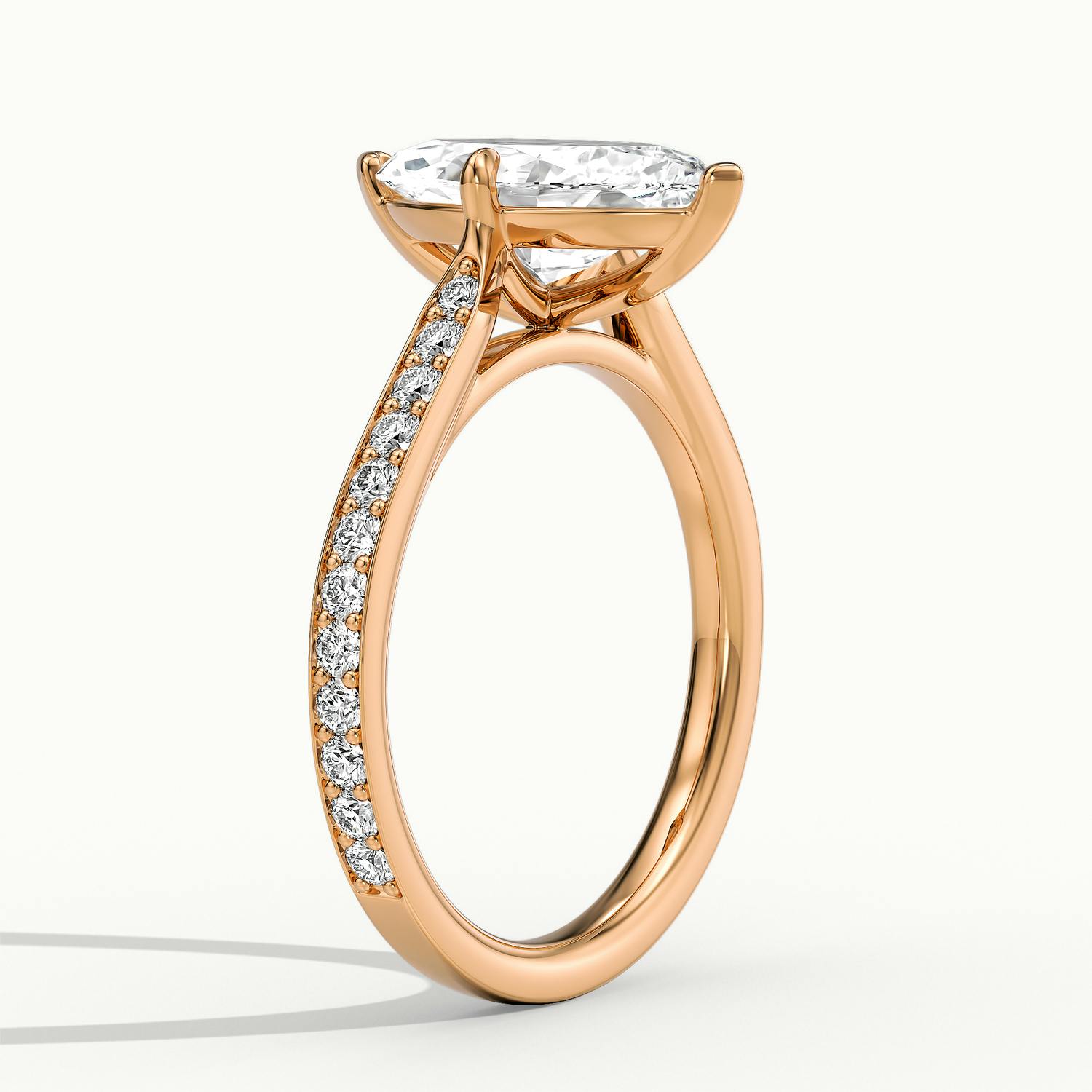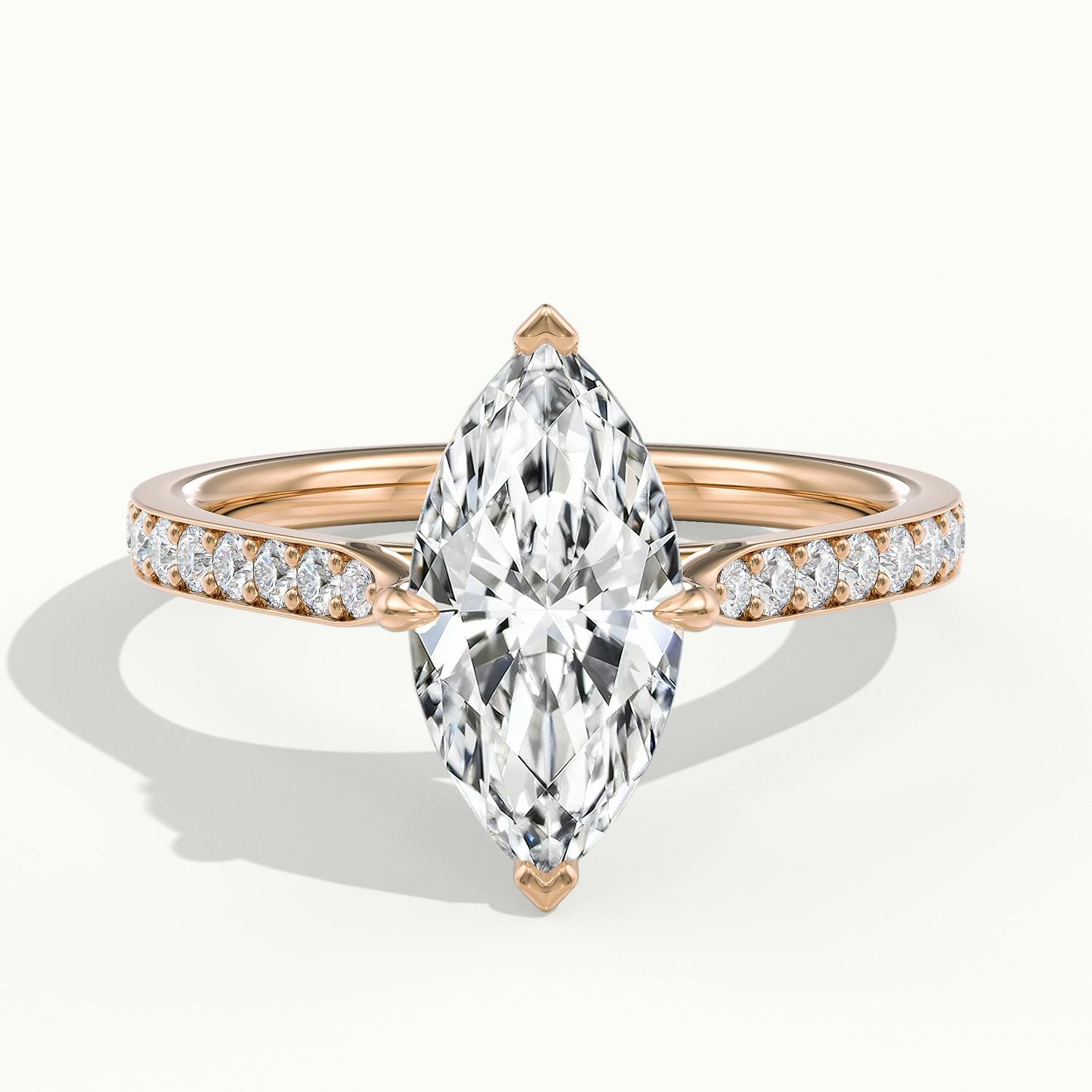 The Bardot Pavé engagement ring in 18k rose gold with a marquise diamond.