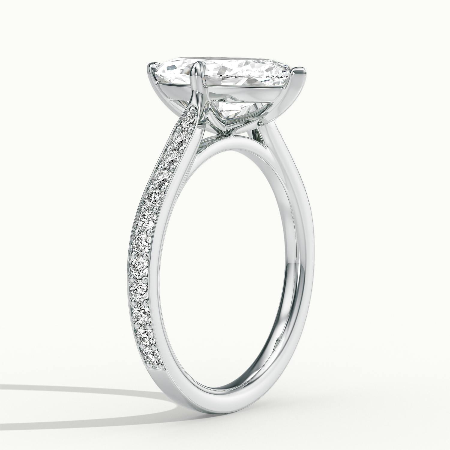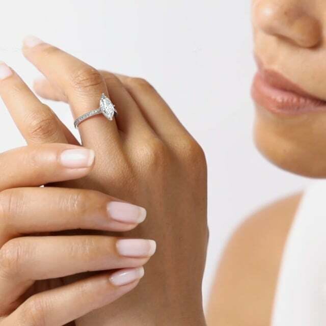 The Bardot Pavé engagement ring in platinum with a marquise diamond.