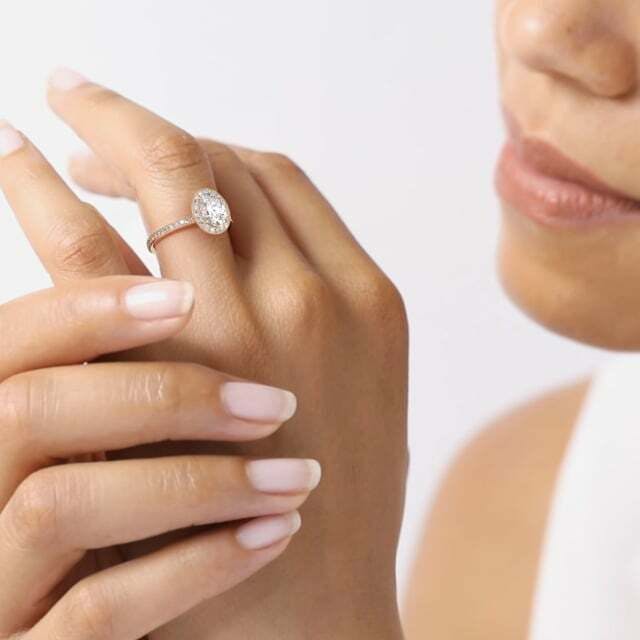 The Classic Cotillard engagement ring in 18k rose gold with an oval diamond.