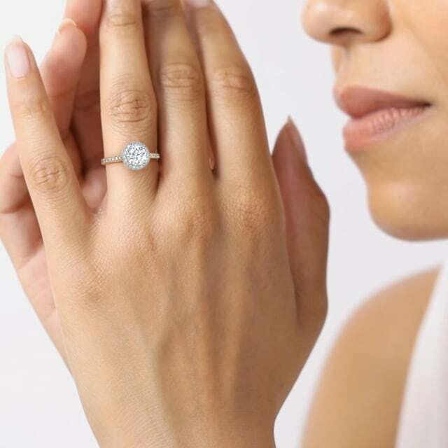 Available with a natural or lab grown diamond, the Classic Faye celebrates modern design with nostalgic flare. The simple halo is set in Pavé style, adding a touch of vintage appeal to the otherwise sleek, modern design. Meticulously set and perfectly calibrated to match in clear and colourless quality, the diamond band and halo enhances the size and sparkle of the main diamond. This wedfriendly design is crafted to sit comfortably alongside a wedding ring.