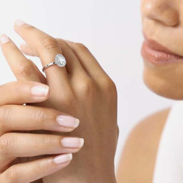 The Cotillard engagement ring in platinum with an oval diamond.