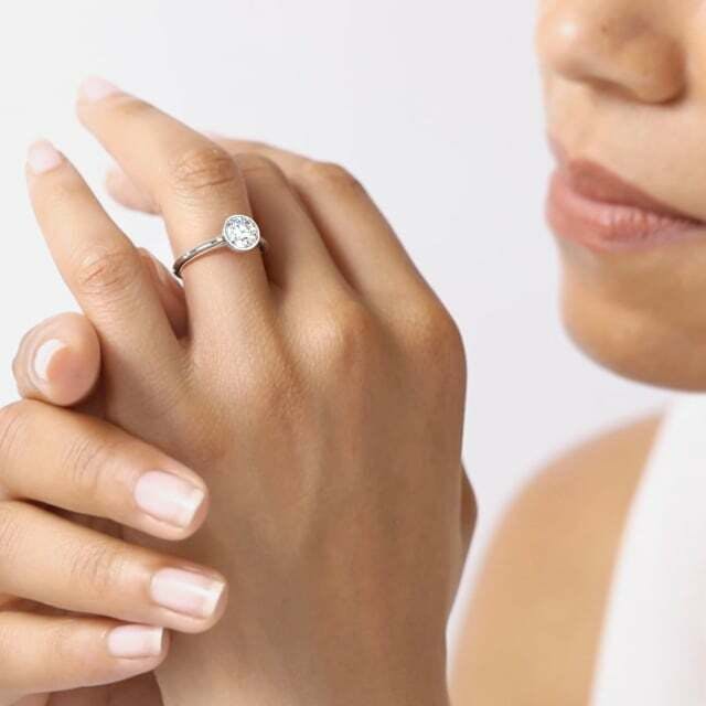 Available with a natural or lab grown diamond, the Darrieux is an ultra-contemporary take on the solitaire ring. Set with rubover style, a thin rim of precious metal encases the diamond for an aesthetic that is sleek, smooth and exceptionally contemporary. Compelling and minimalist, the Darrieux is complete with a subtle hidden halo of melee diamonds. This wedfit design is crafted to sit flush alongside a wedding ring.