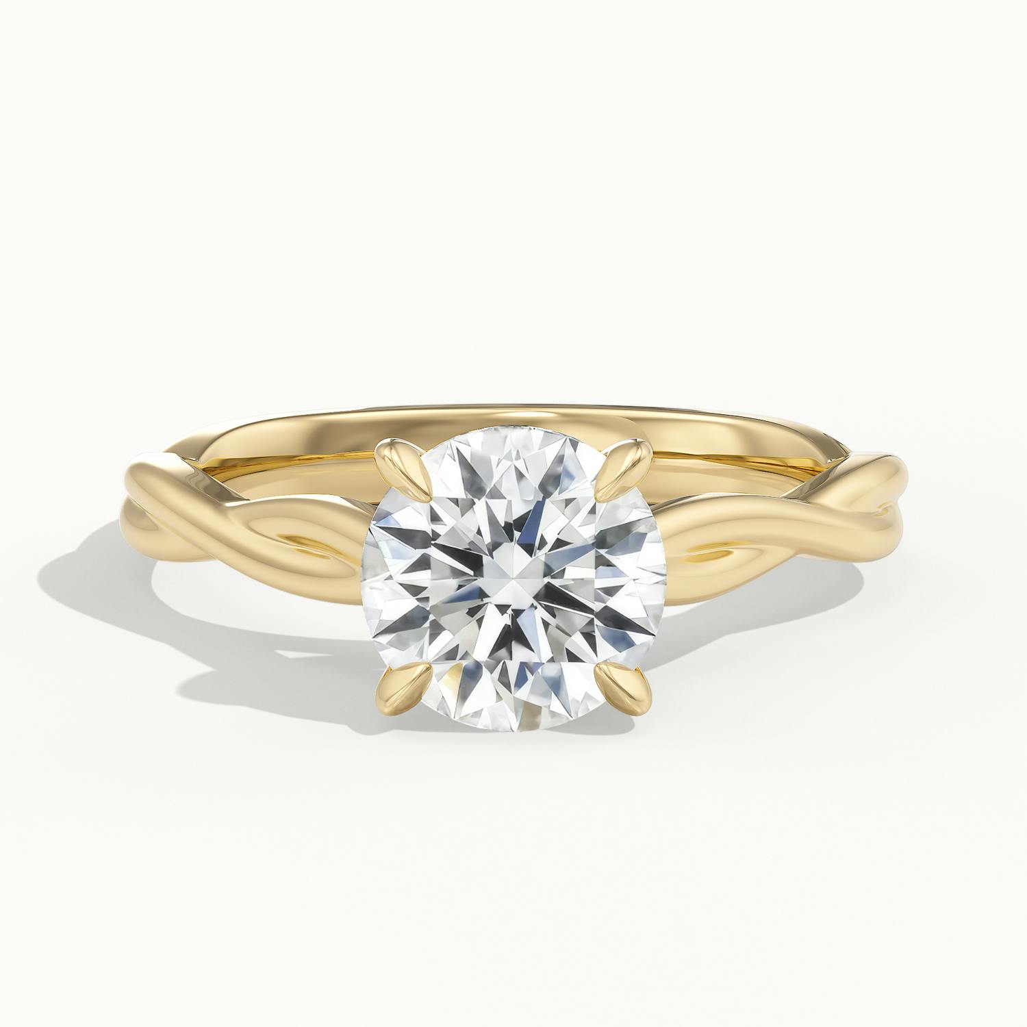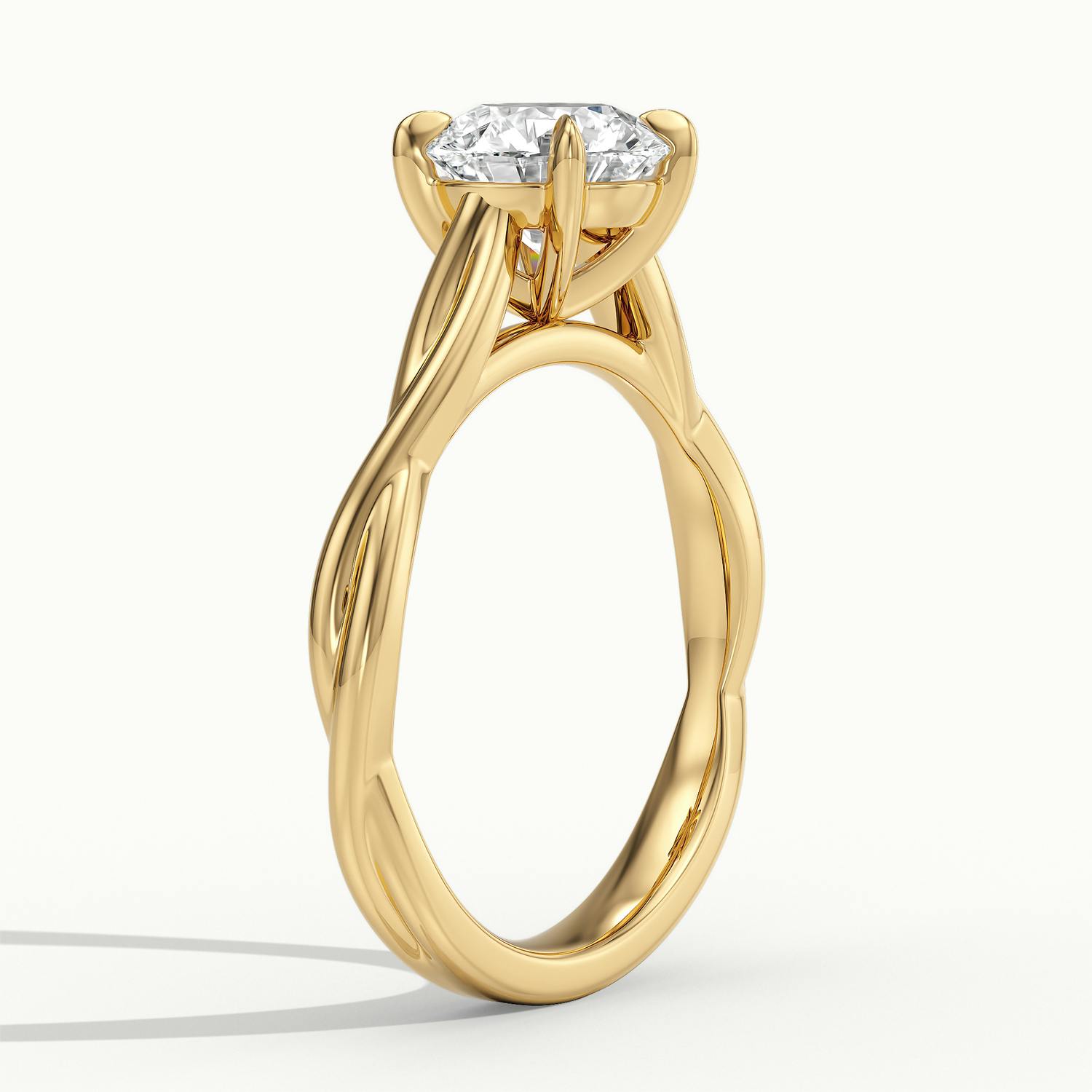 The 18k Yellow Gold Round Falco Engagement Ring celebrates classic warmth with a contemporary twist. The soft, intertwined band flows into delicate talon claws that secure the round diamond in place. Its smooth, polished finish adds comfort and shine, while the wedfit structure ensures a perfect fit alongside your wedding ring – timeless craftsmanship with a modern edge.