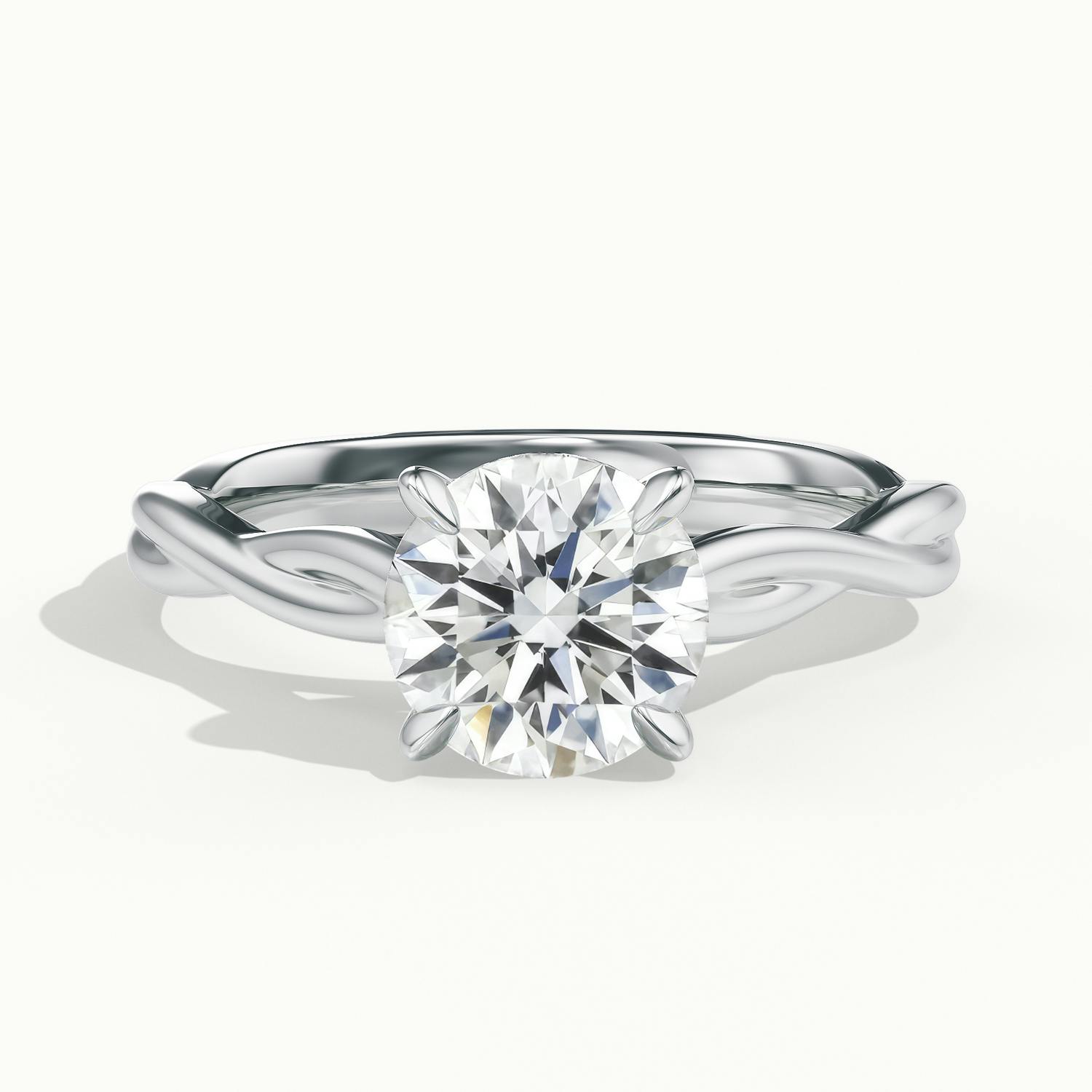 The Platinum Round Falco Engagement Ring offers a modern twist on the classic solitaire. The flowing, interwoven band brings movement and depth to the design, while the round diamond is held securely with soft talon claws. Polished platinum enhances the brilliance of the diamond and ensures exceptional durability. The wedfit structure allows the ring to sit flush with your wedding band for effortless, everyday wear.