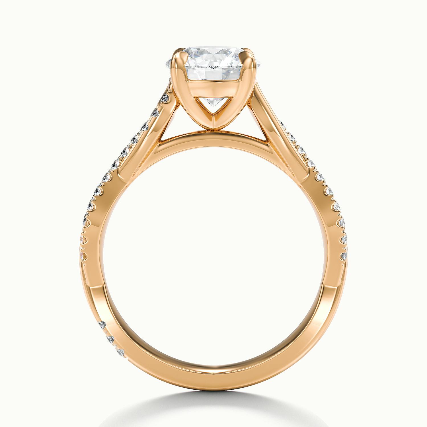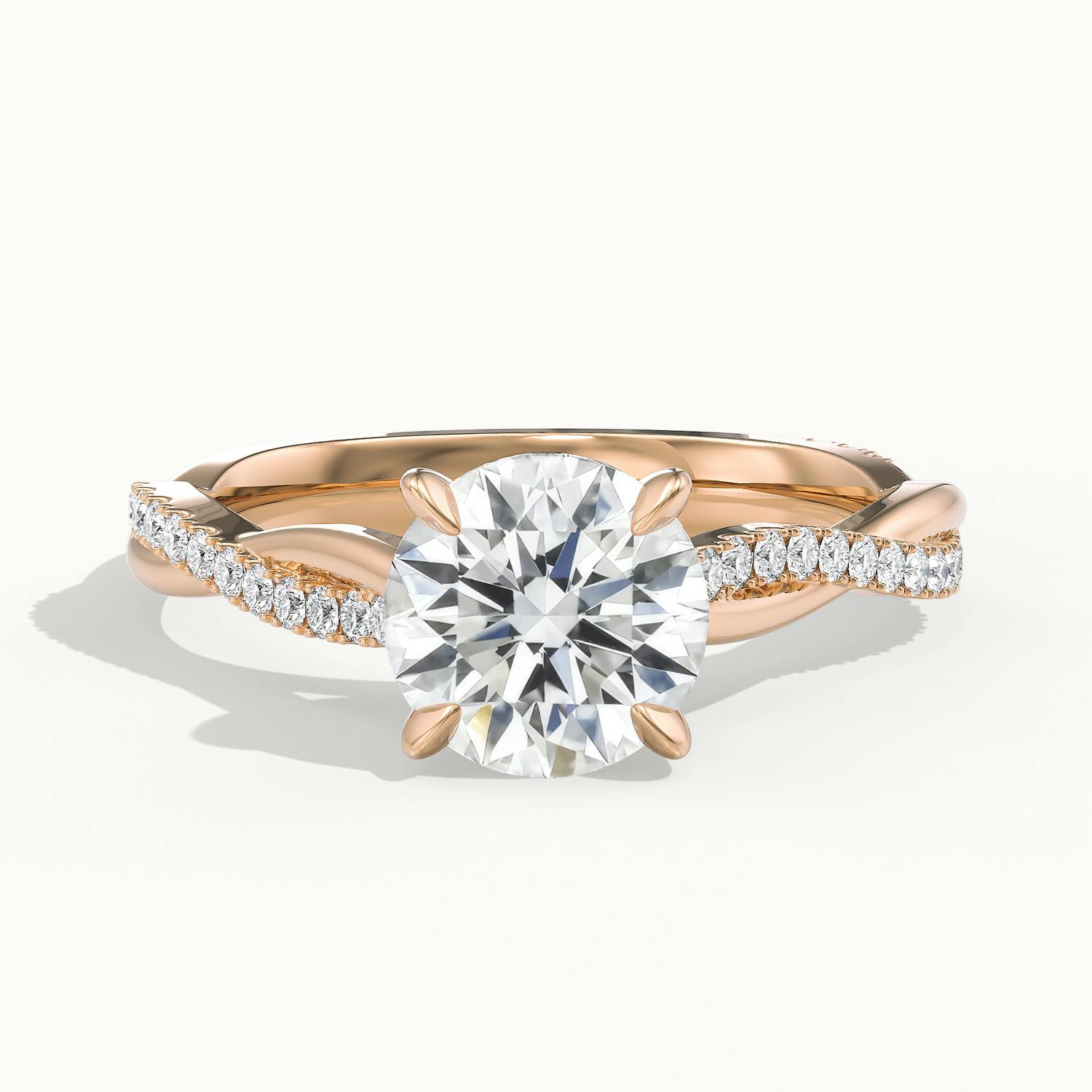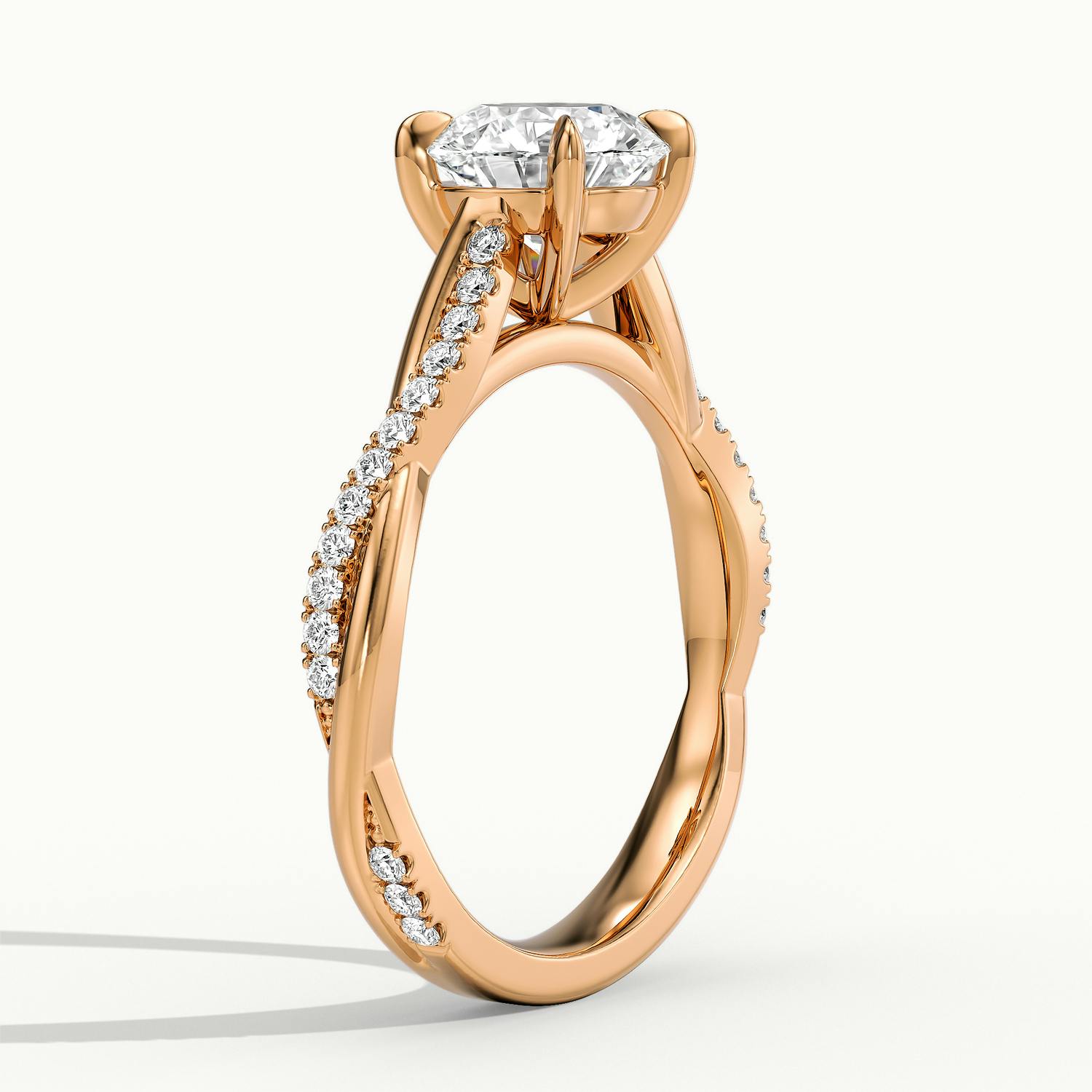 The 18k Rose Gold Round Falco Scallop Engagement Ring blends warm romance with sculptural elegance. Its twisted band is set with scallop diamonds, offering refined sparkle and graceful movement. The rose gold finish enhances the ring’s soft glow, while the wedfit design ensures perfect harmony beside your wedding ring – effortlessly elegant and full of character.