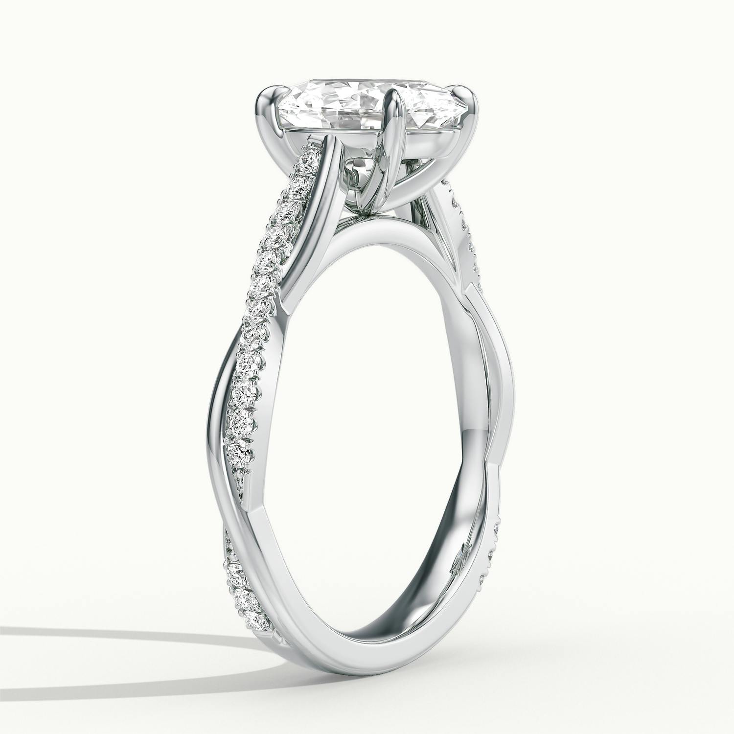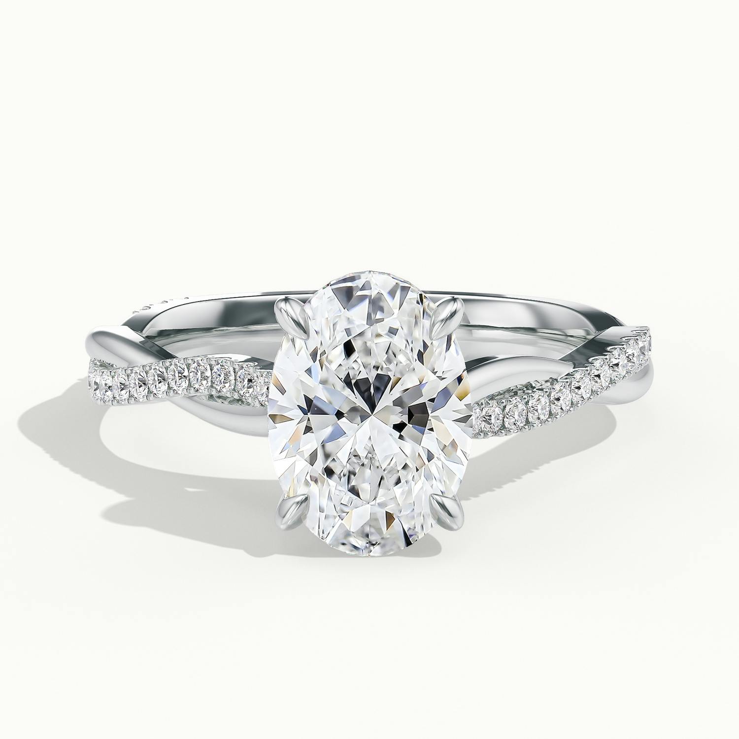 The Falco Scallop engagement ring in 18k white gold with an oval diamond.