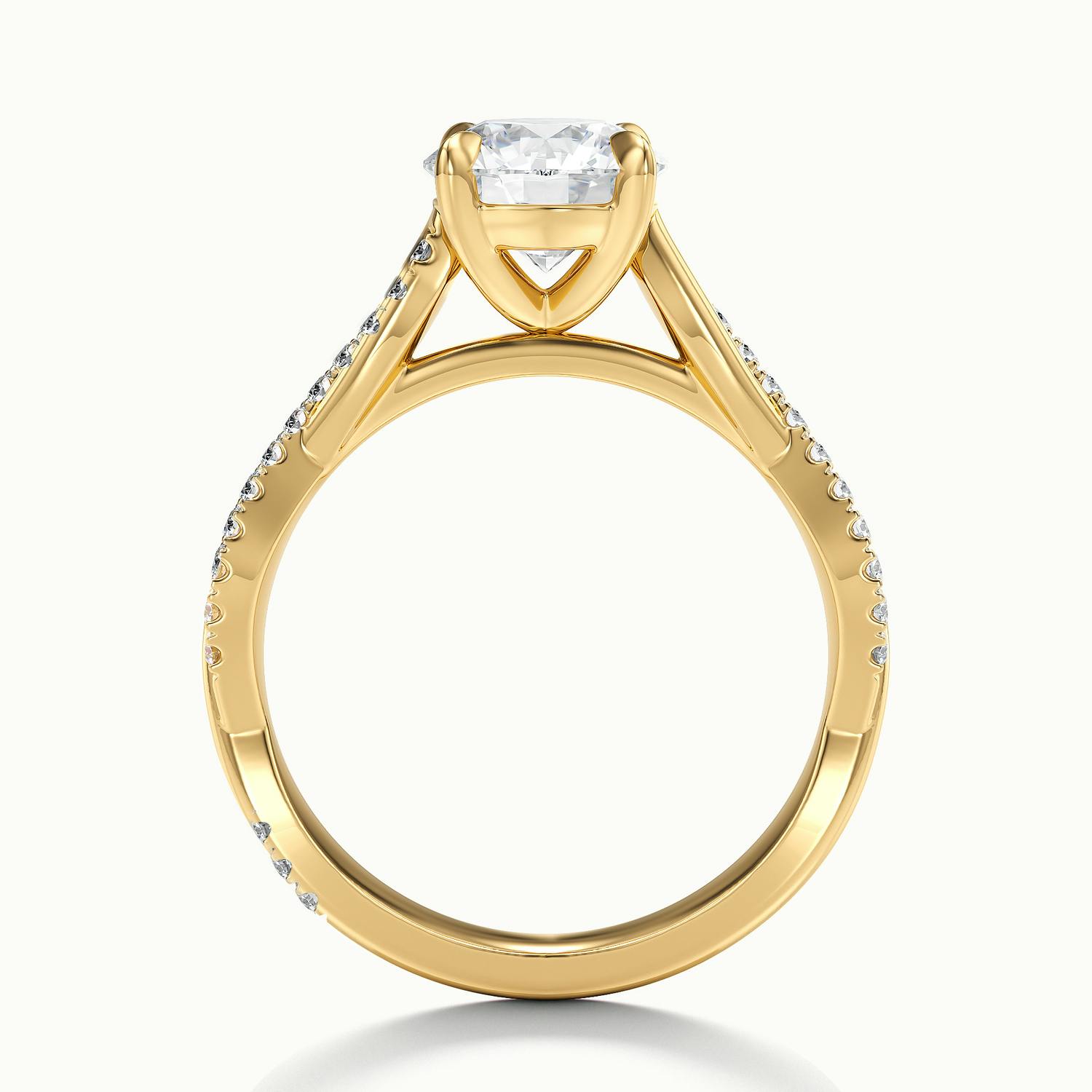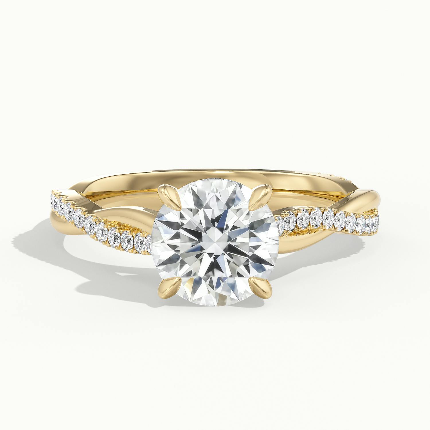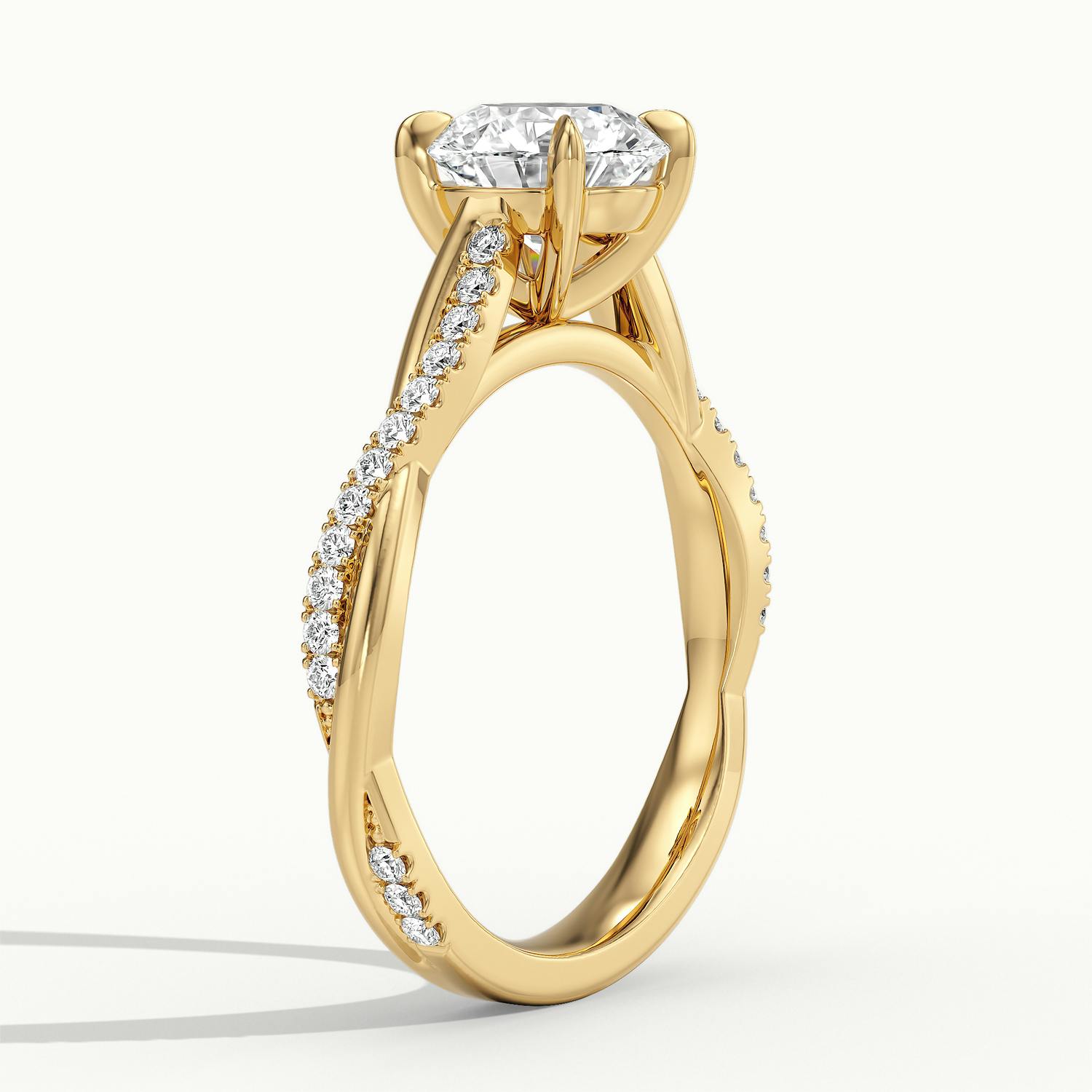 The 18k Yellow Gold Round Falco Scallop Engagement Ring combines timeless radiance with a contemporary twist. The twisted band is accented with scallop-set diamonds, creating depth and brilliance that enhances the central round stone. Designed with a wedfit structure, it pairs seamlessly with your wedding band – bold yet beautifully balanced.