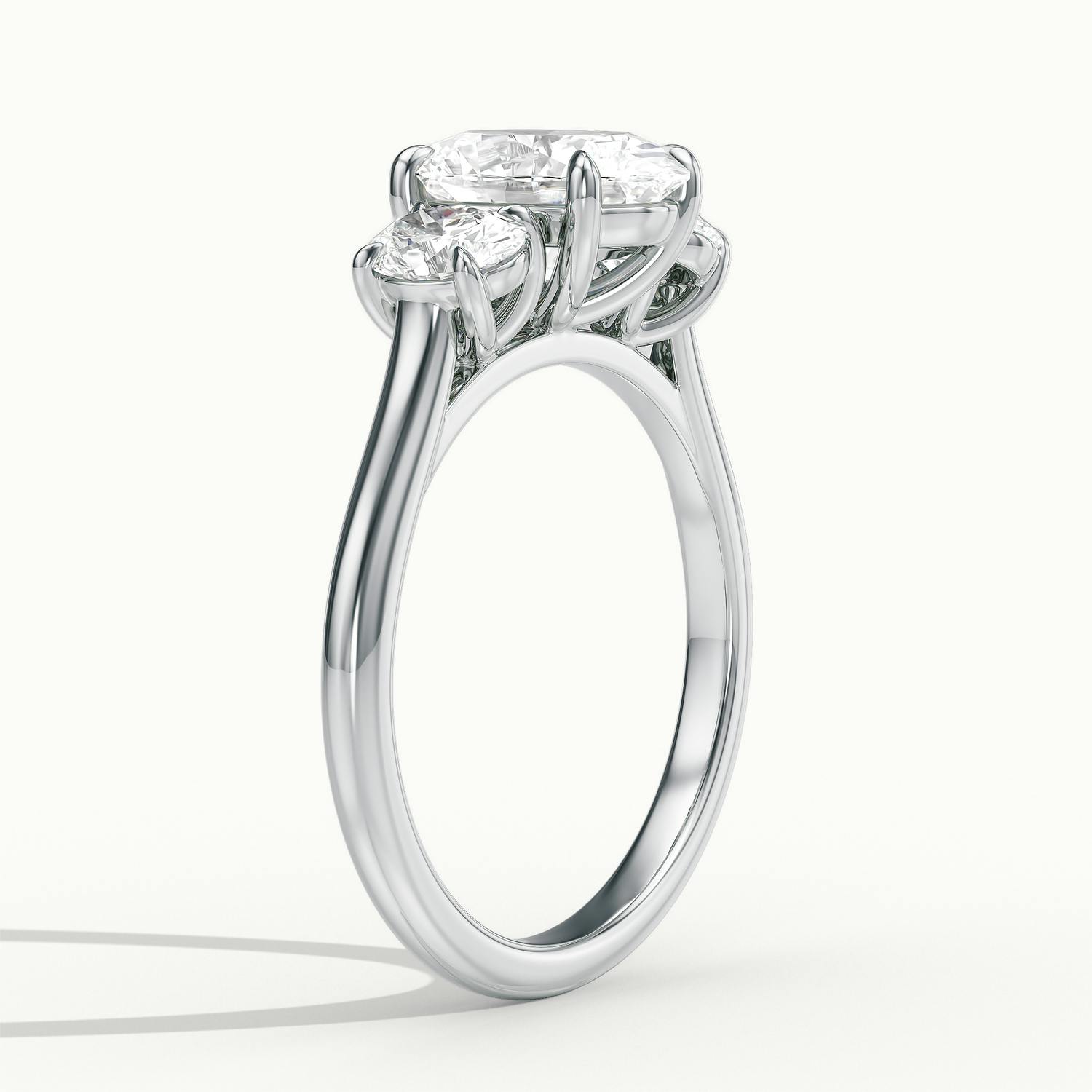 Understated elegance defines the Oval Hendricks Trilogy Ring in 18k white gold. Featuring three beautifully matched oval cut diamonds – one radiant centre stone complemented by two side diamonds – this design captures a balance of brilliance and harmony. Each diamond is secured in refined soft talon claws, with a bezel that provides comfort and strength. The cool white gold setting enhances the diamonds’ brightness, while its wedfit engineered design ensures a seamless fit with a wedding ring. A contemporary take on a timeless trilogy style.