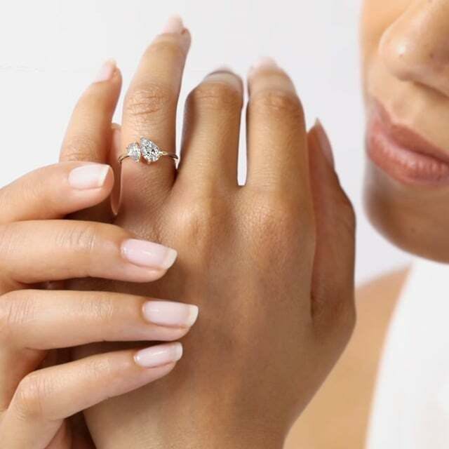 The 18k Yellow Gold Marlo Engagement Ring reinterprets the Toi et Moi design with radiant charm. Two pear cut diamonds sit gracefully alongside one another, their mirrored shapes following the band’s gentle curve. The golden setting amplifies their brilliance, creating a romantic yet confident design for those drawn to modern artistry with timeless appeal.