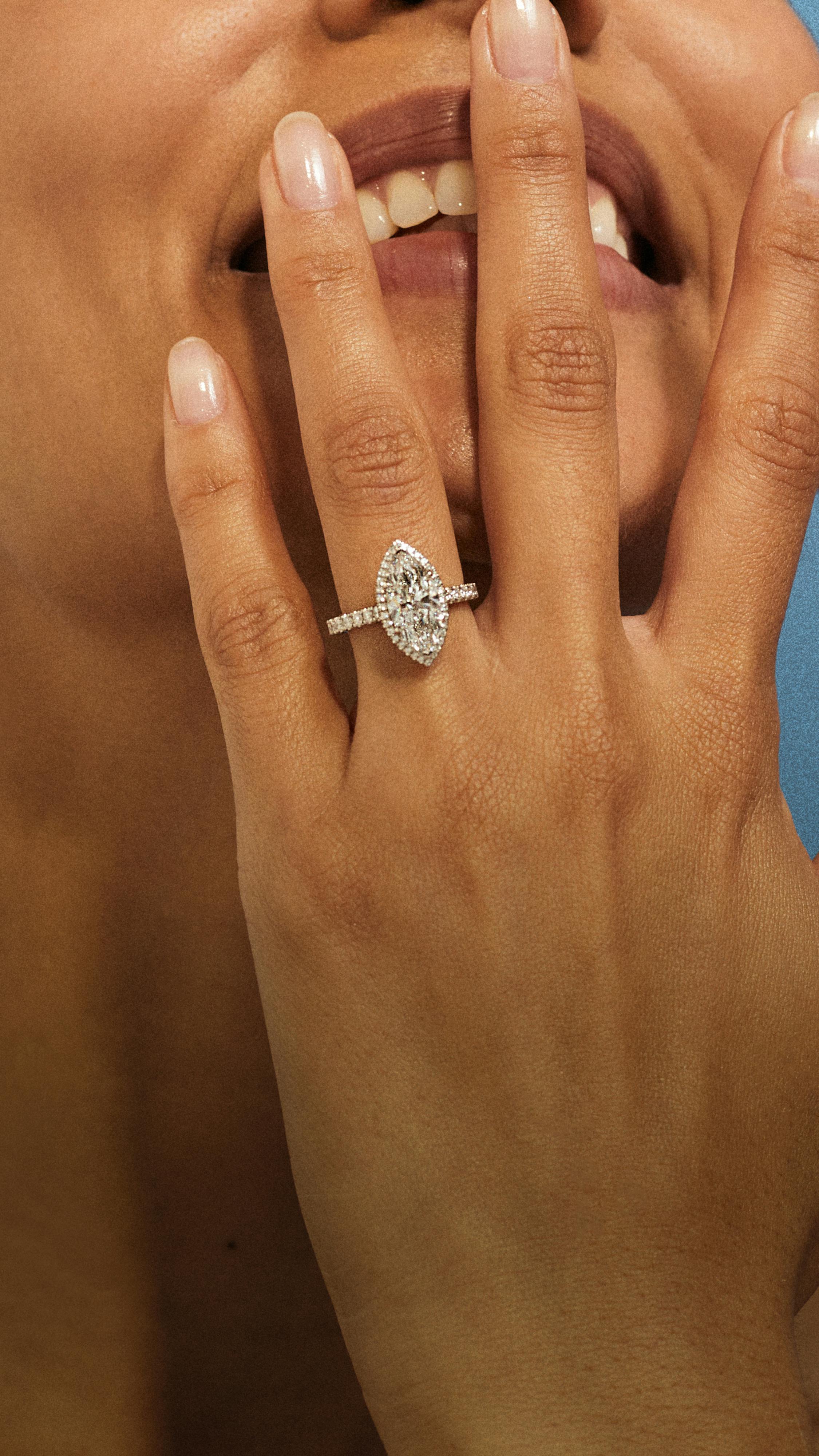 Shop marquise diamond rings: the distinctive cut that offers vintage charm and brilliant sparkle. Discover your marquise engagement ring, available with natural or lab grown diamonds.