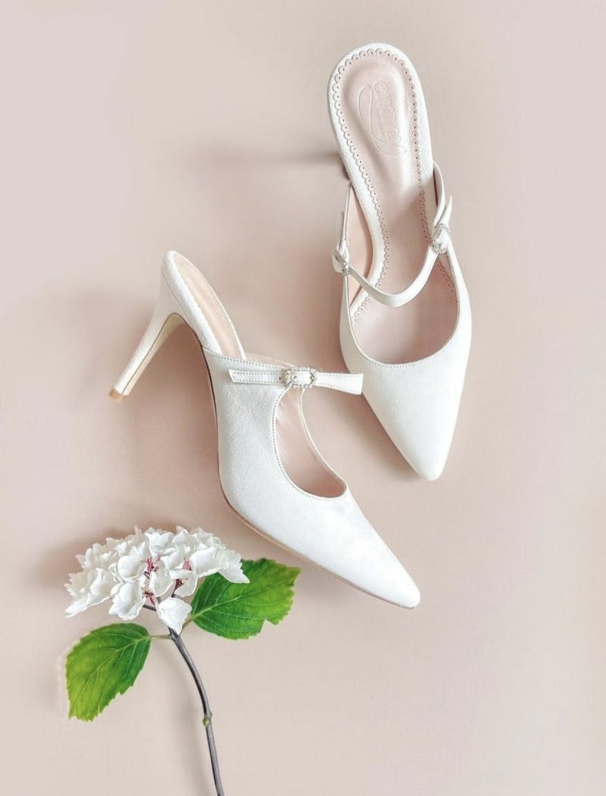 - Emmy London – Synonymous with classic bridal sophistication. Their handcrafted shoes and accessories feature delicate embellishments, luxurious fabrics and elegant silhouettes. Ideal for brides looking to add a touch of vintage glamour to their wedding day look. Prices start at around £350, and they are based in London with an online shop.