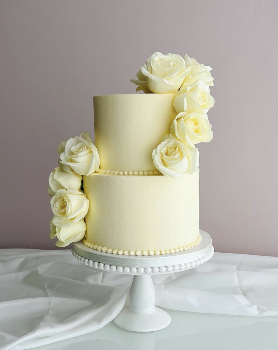 - Pat-a-Cake – Offers classic wedding cakes with a touch of elegance and charm. Based in Devon, their cakes often feature traditional designs with delicate sugar flowers and elegant piping, perfect for a classic wedding celebration. Prices start at £300.