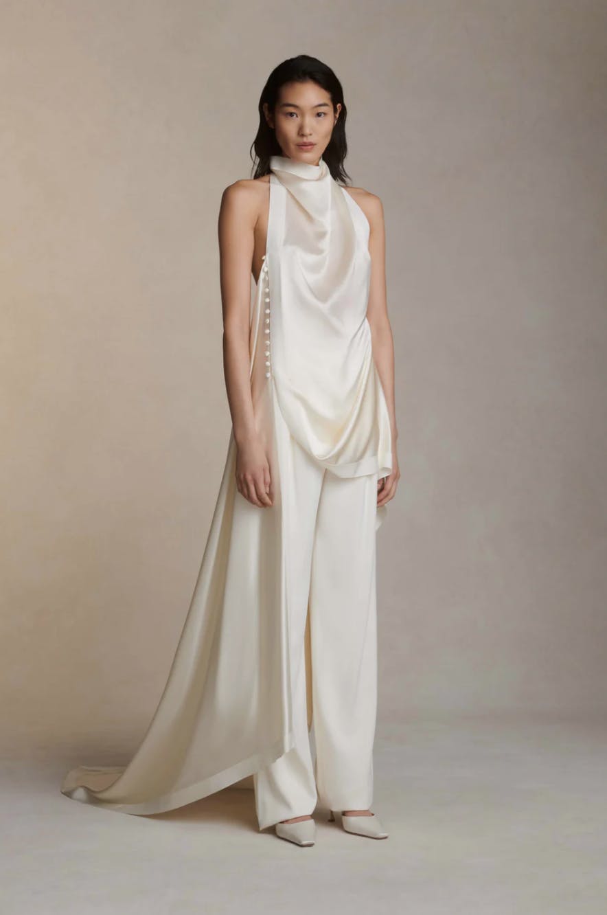 - Galvan Bridal – In our opinion, the absolute best for chic, minimalist, stunning tailoring. Find bridal suits and simple dresses that look expensive. Prices from around £850.