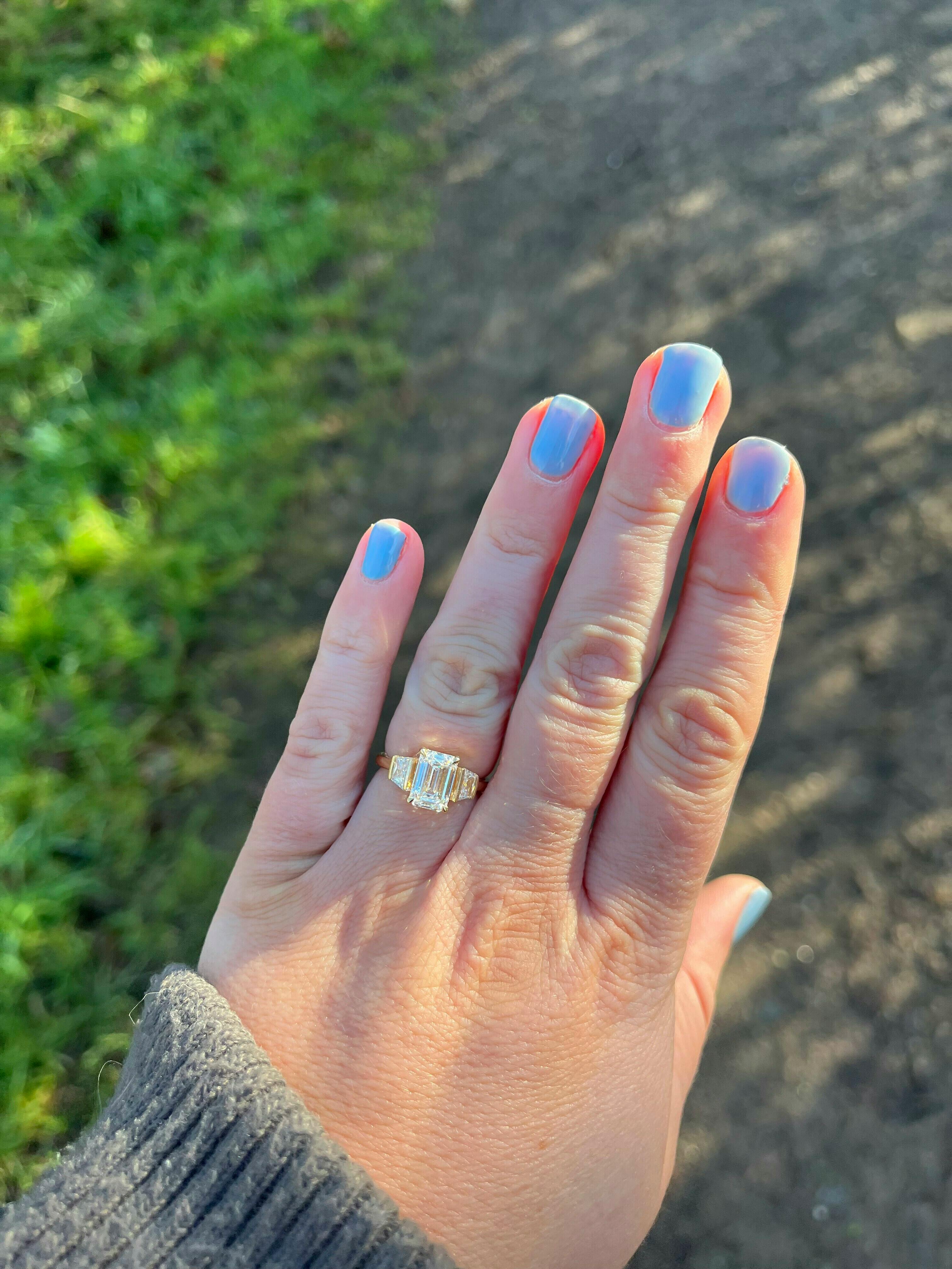 Sofia Richie’s engagement ring is estimated to be worth around £300,000, thanks to its sizeable emerald cut diamond and platinum setting. But creating a similar, timeless look doesn’t have to come with a celebrity price tag.