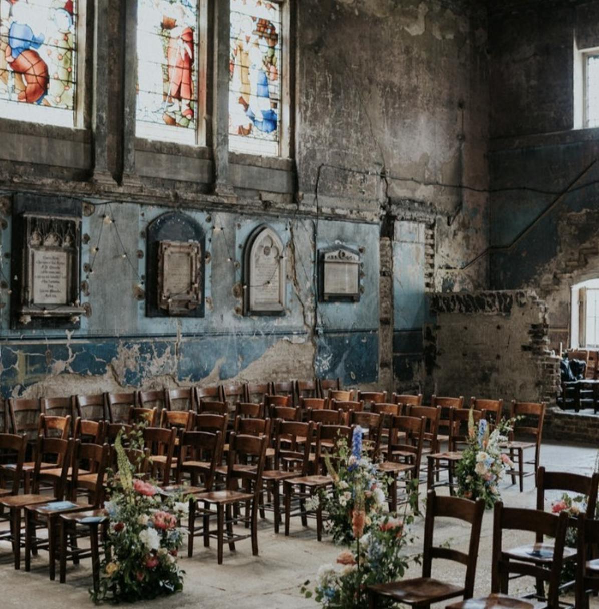- Asylum Chapel, London – A unique and atmospheric venue, Asylum Chapel features stunning stained glass windows, distressed walls, and a historic ambiance, perfect for a whimsical urban wedding.