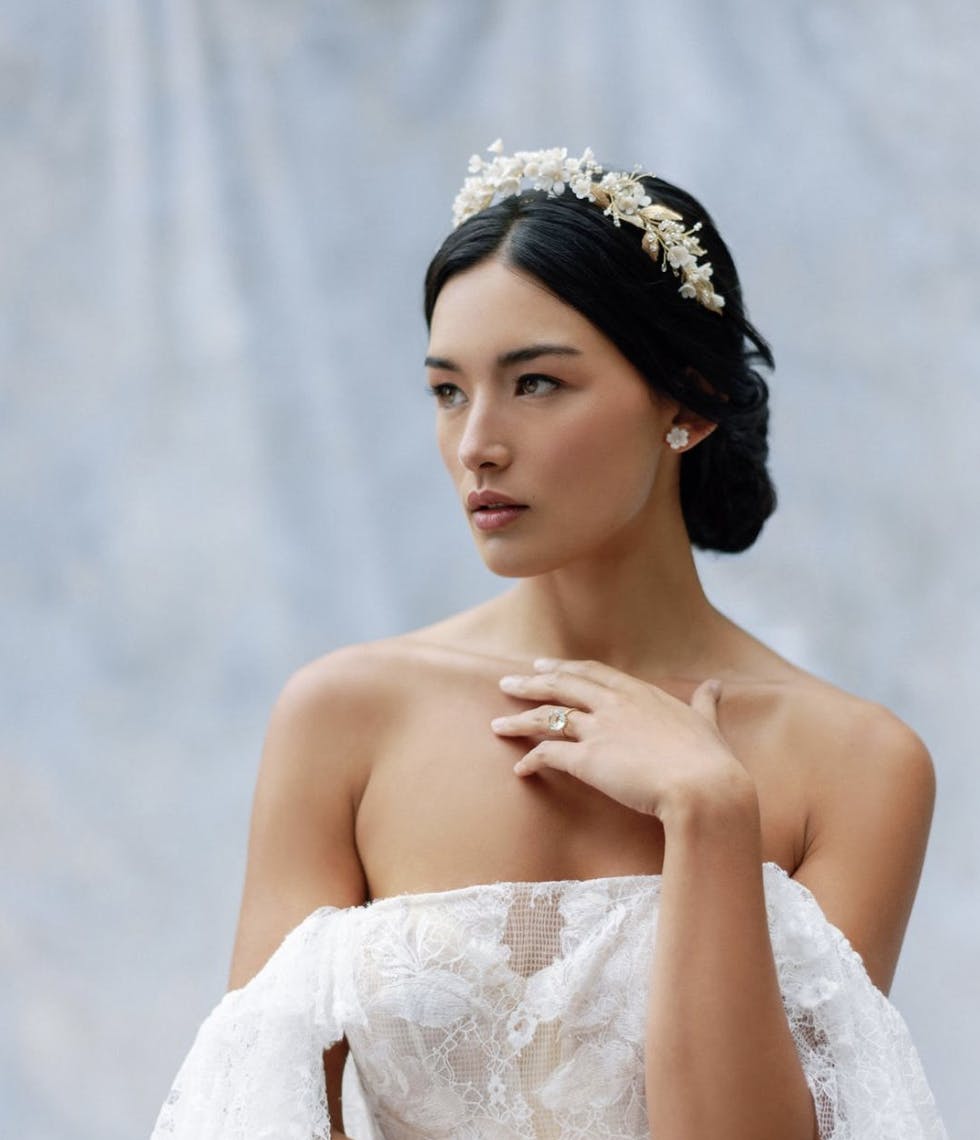 Complete your whimsical bridal look with the perfect shoes and accessories. Whether you're seeking delicate floral headpieces, elegant jewellery or beautifully crafted shoes, these designers offer an array of enchanting options to add a touch of magic to your wedding day.