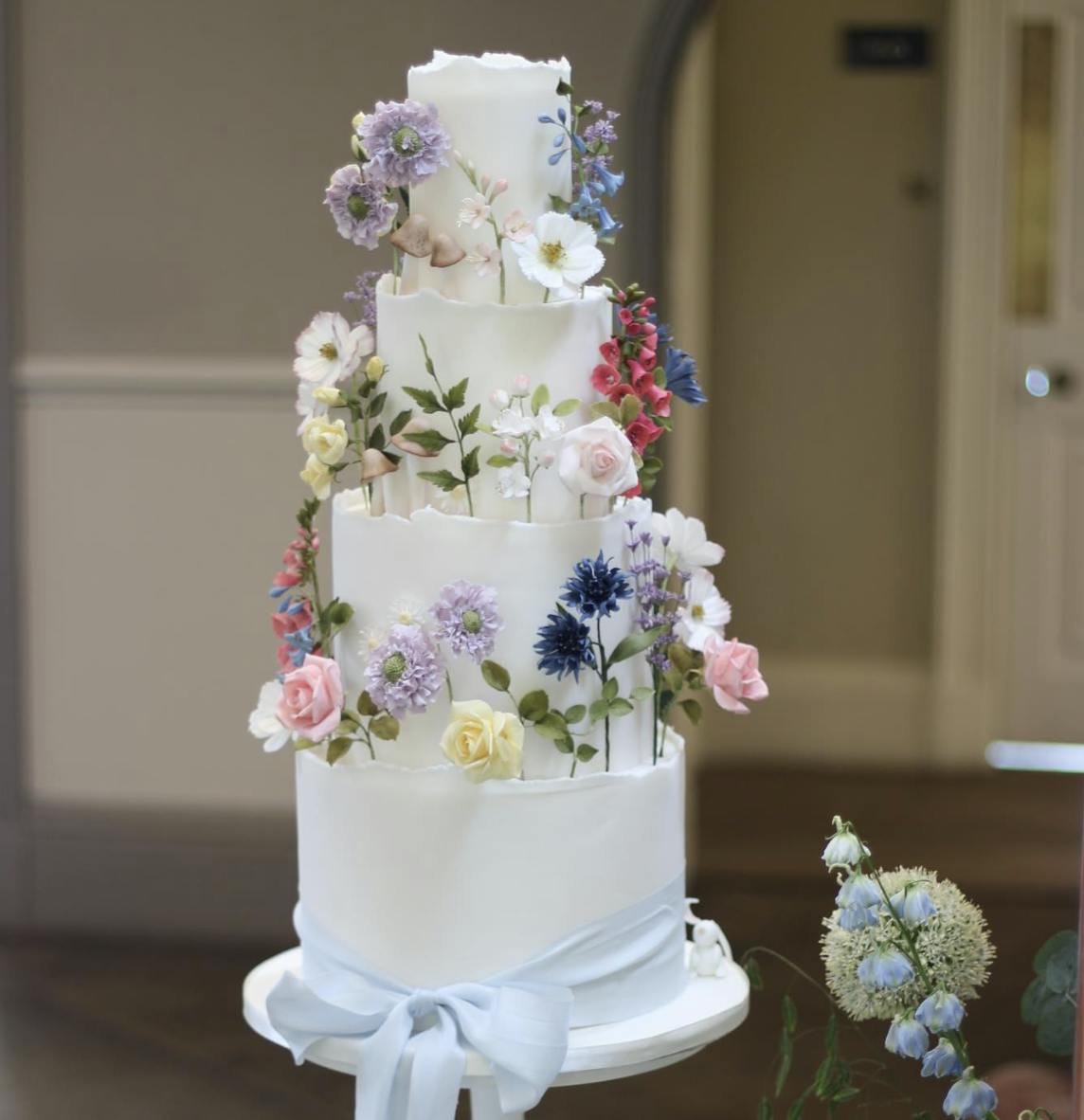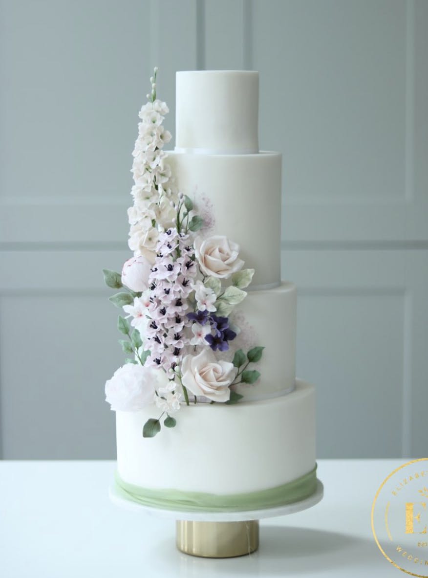 - Elizabeth Harris Cakes – Specialising in elegant and whimsical wedding cakes with a touch of luxury, Elizabeth Harris Cakes often incorporates delicate sugar flowers and intricate lacework. Starting at £600, these sophisticated and enchanting cakes are perfect for a fairytale wedding centrepiece.