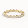 Scallop set wedding rings, like the Wishbone Scallop wedding ring, are a timeless choice that exude elegance and sparkle. Shaped wedding rings, such as the Montez Round & Marquise wedding ring, are perfect for pairing with non-wedfit engagement rings. Both offer intricate settings that make them perfect for adding a touch of whimsy to your bridal ensemble.