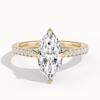 Pear engagement rings combine the brilliance of round cuts with the distinctive style of marquise cuts, forming a teardrop shape.