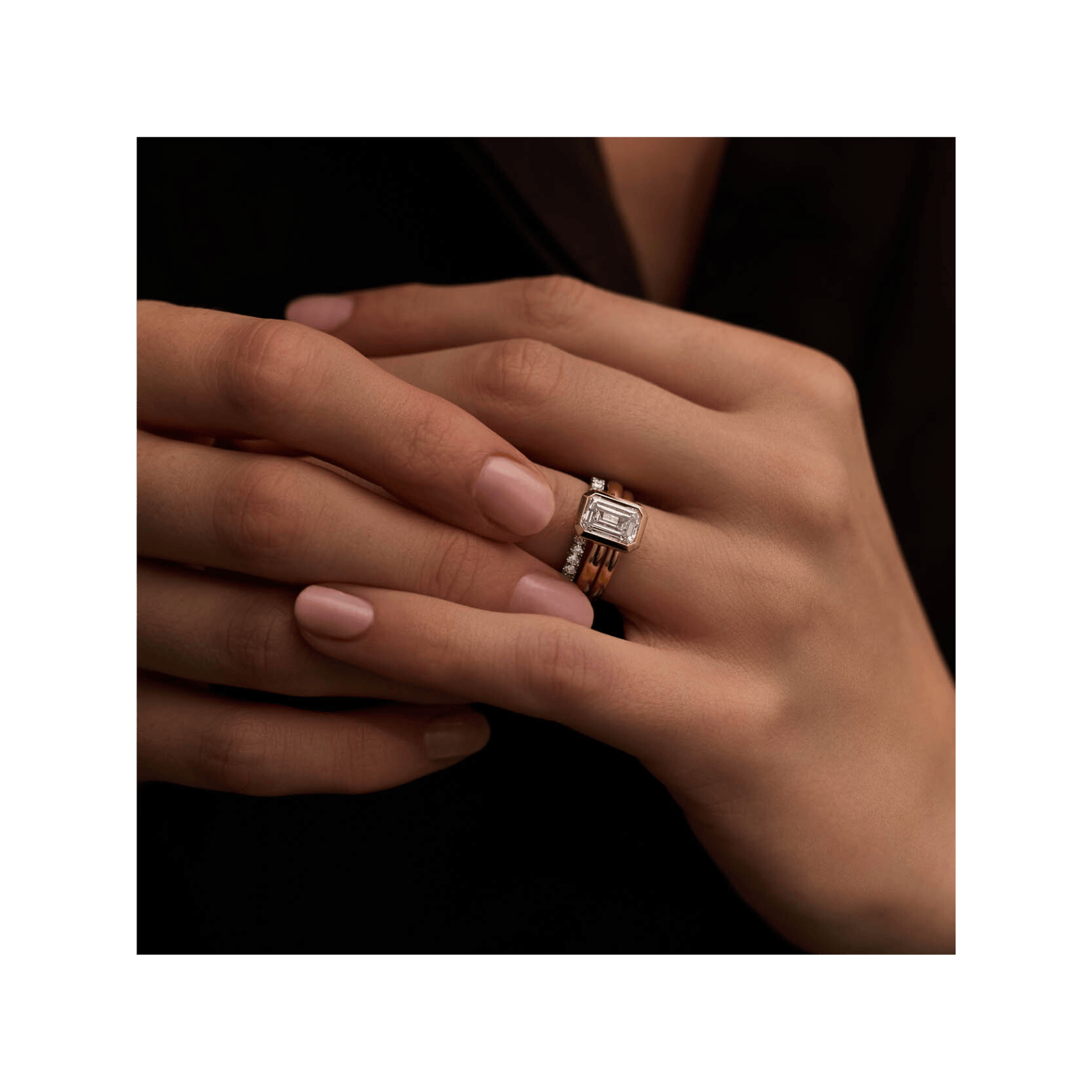 Sometimes, an engagement ring can feel completely different when worn with the right wedding band. If you’re unsure about the ring on its own, trying it on alongside a band can help bring everything together – softening the overall style or giving it an added touch of sparkle or contrast.