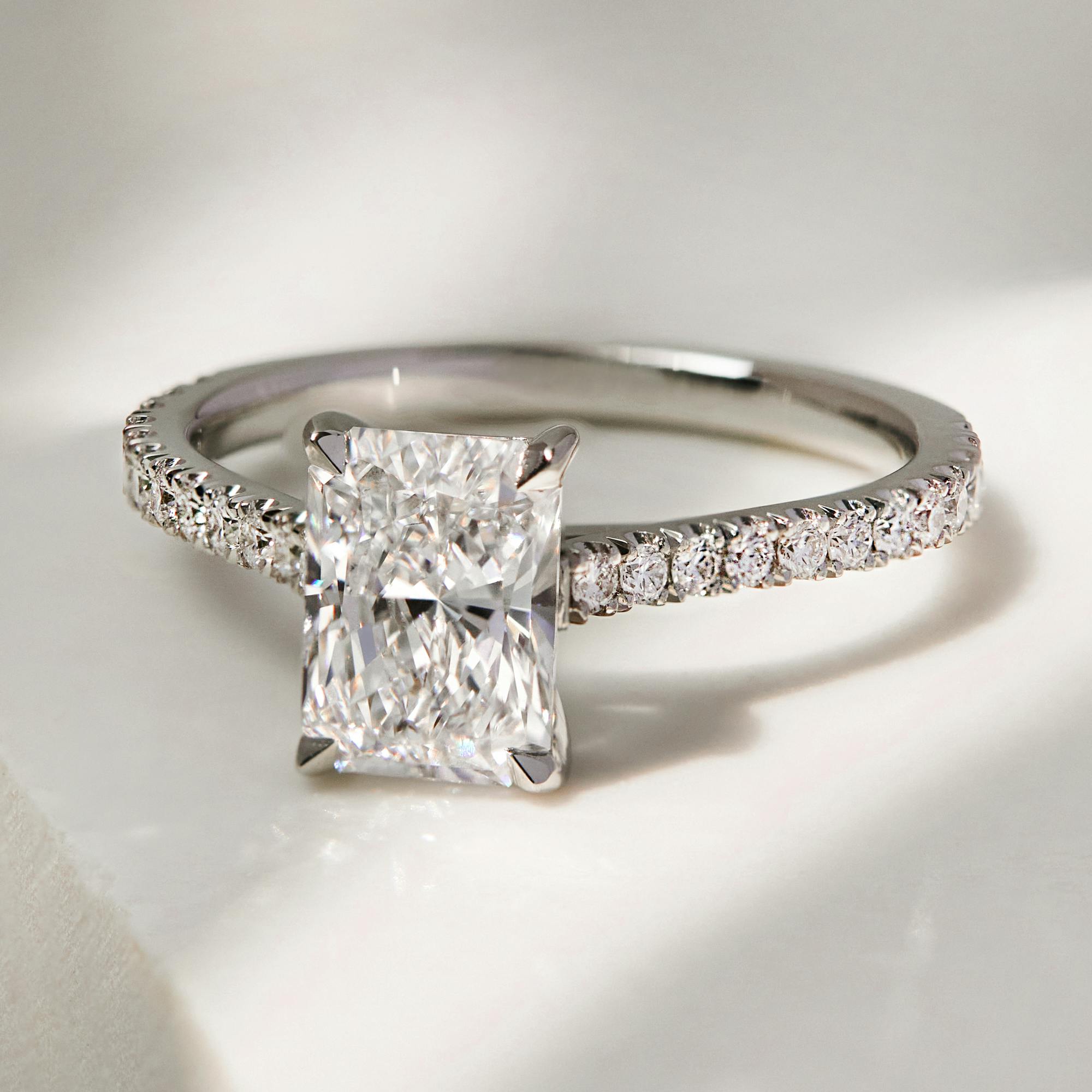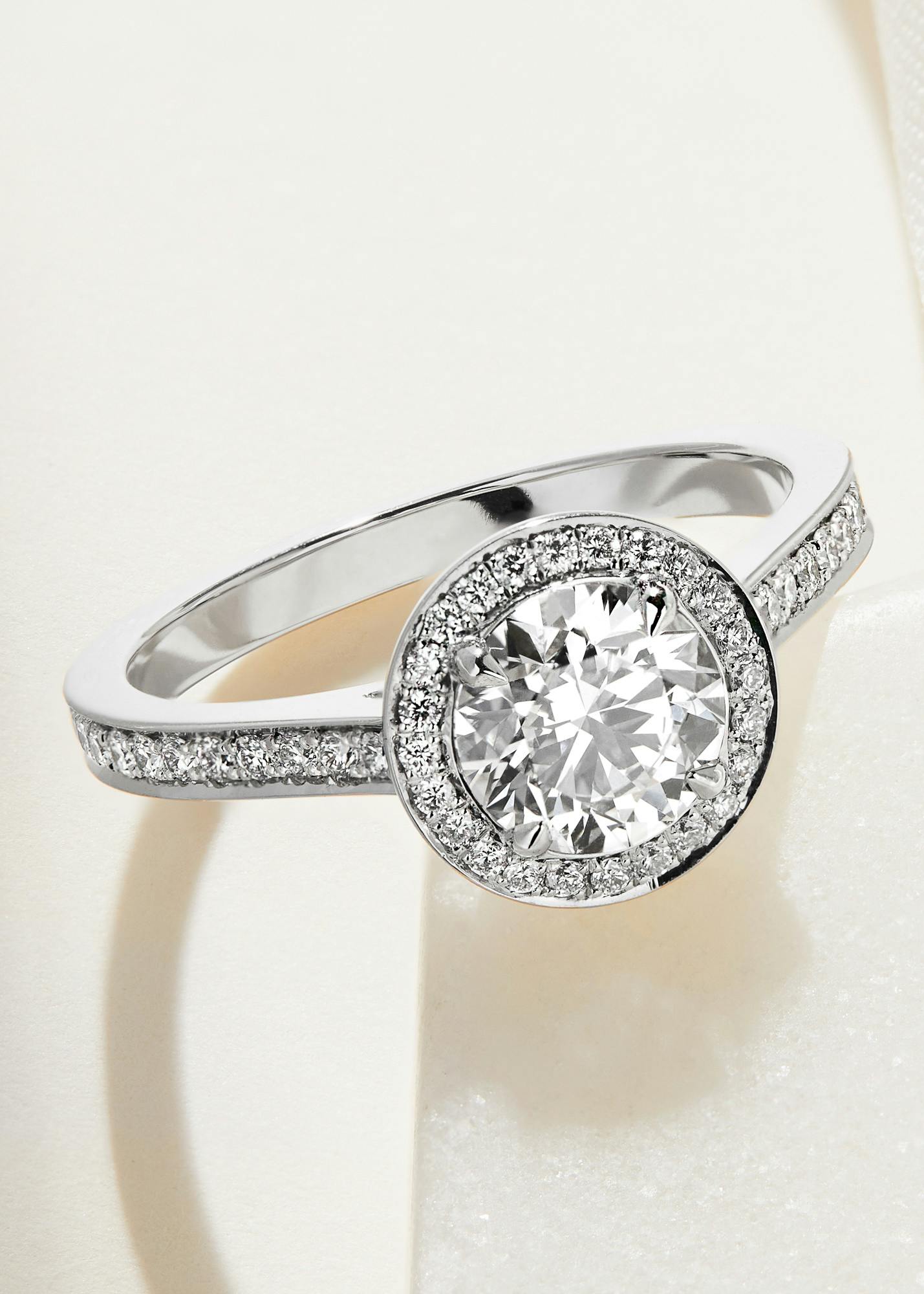 Platinum is a pure, silver-toned metal, amongst the rarest in the world. As a colourless metal, platinum is bright and lustrous, and is the perfect accompaniment for diamonds, to keep them icy and similarly colourless. The platinum metal used for engagement rings is typically 95% platinum, 5% other precious metals (like palladium, copper or rhodium), otherwise referred to as ‘950 platinum’.