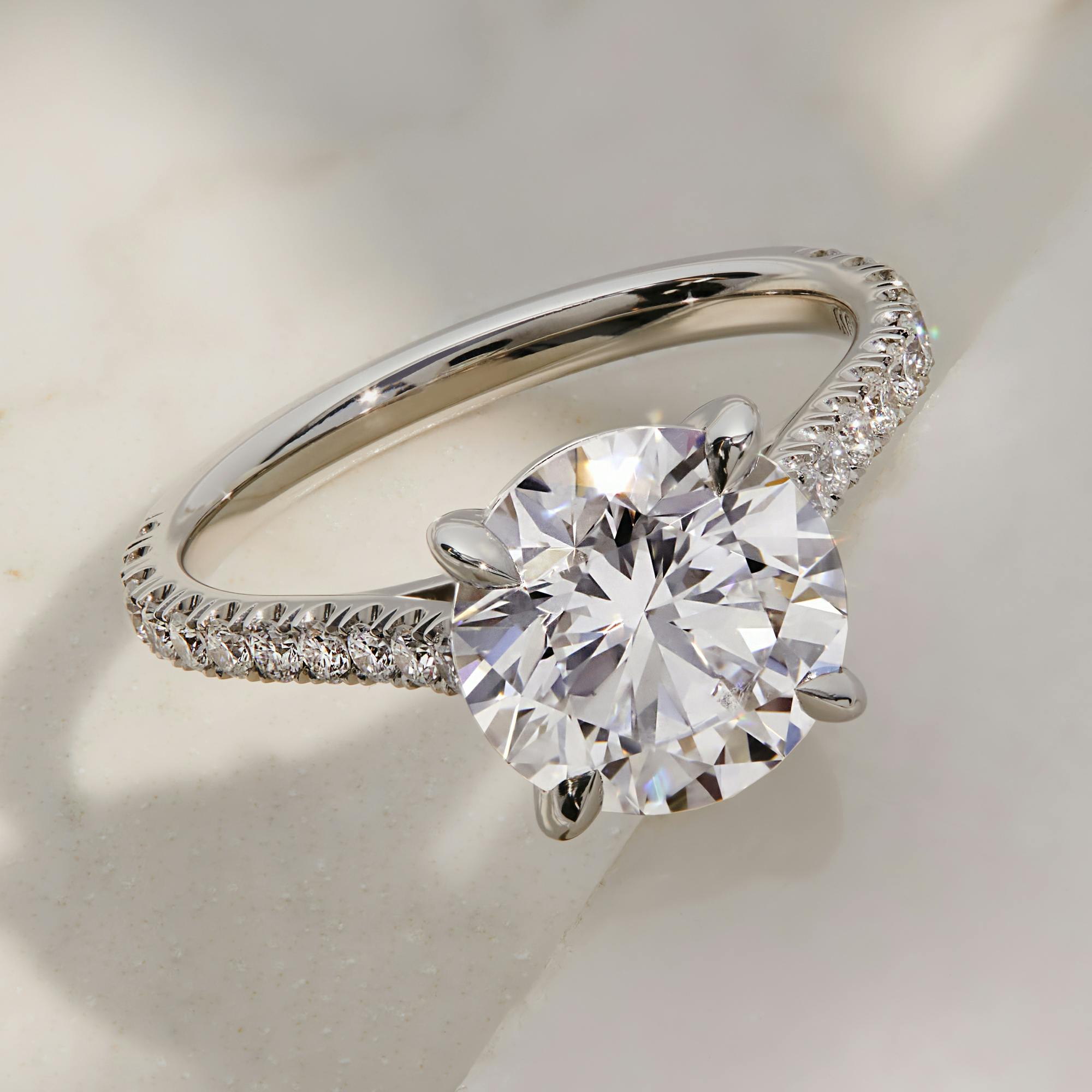 As a colourless and lustrous metal, platinum is a great choice for diamond engagement rings. The reflectivity of the metal enhances the diamond’s sparkle, keeping it bright, colourless and icy. Other metals, like yellow and rose gold, can have their warm tones picked up by the diamond, therefore reducing its colourless appearance.