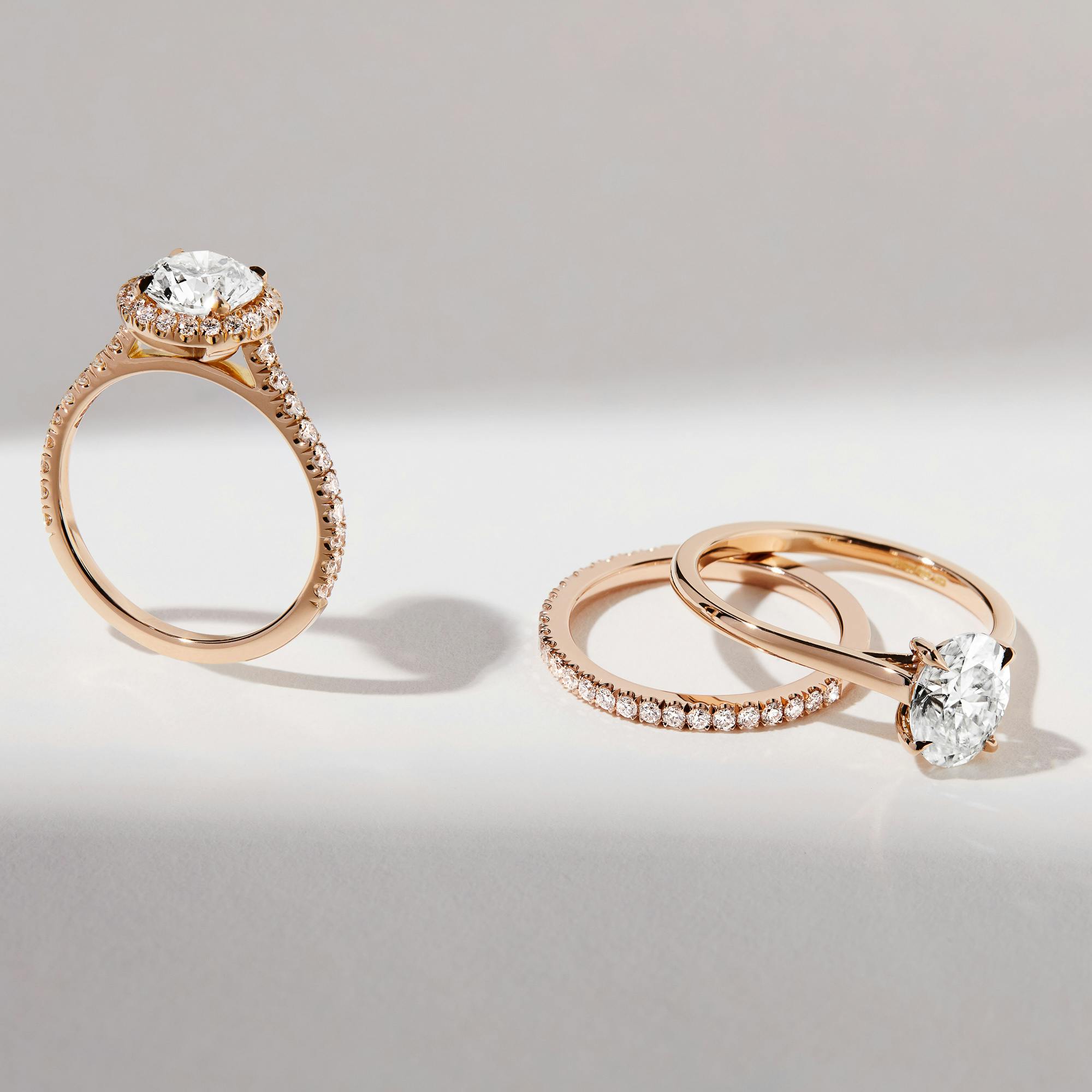 Yellow gold metal can consist of differing quantities of gold, copper and silver. Most commonly, engagement rings and fine jewellery will be created with 18K or 14K rose gold.